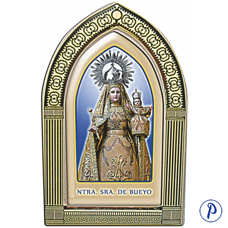 Repié Capilla dorada con imagen personalizada. Tamaño grande aproximado 11 x 7 cm.