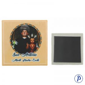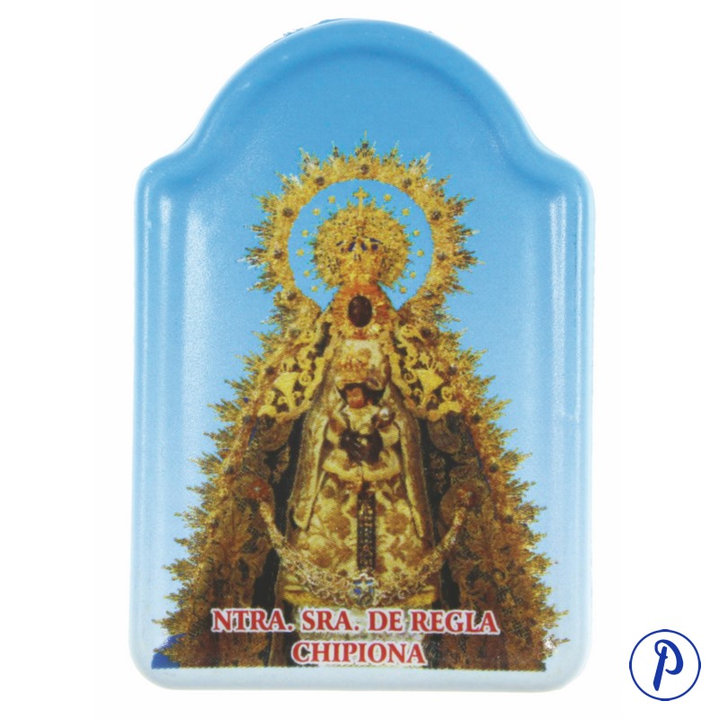 Imán en forma de capilla de resina con imagen personalizada. Tamaño aproximado 5 x 3,5 cm.