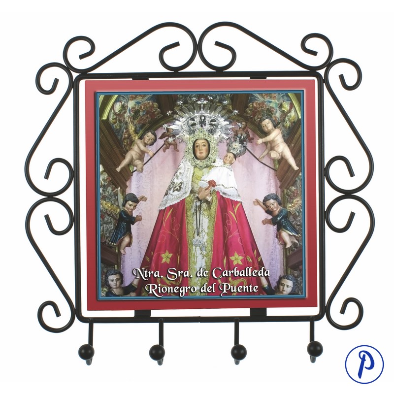 CUELGALLAVES DE FORJA CON AZULEJO 15 X 15 CM CON