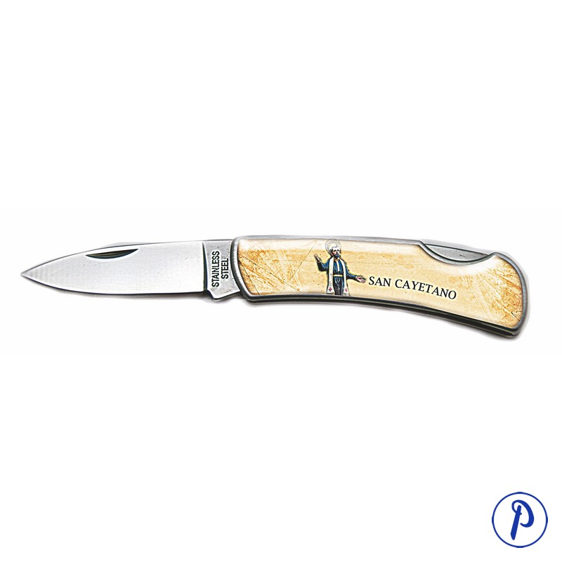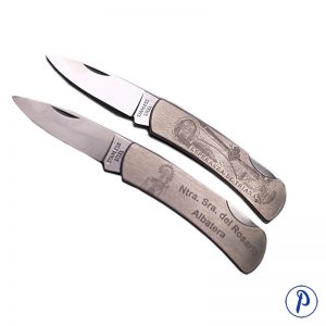 Navaja en acero con el puño personalizado con montaje e imagen fotoemaltada. Tamaño aproximado 7,5 x 2,5 cm.
