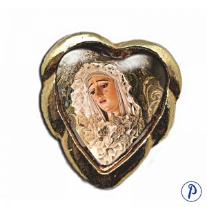 Pin con forma ovalada con orla bañada en oro e imagen personalizada en su interior. Tamaño aproximado 2 x 1,5 cm.